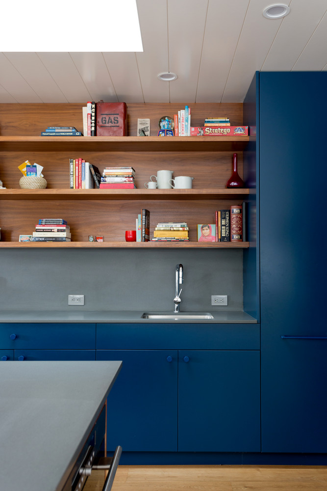 What better way to show off that extensive collection of cookbooks than with a built-in unit specifically reserved for that purpose? Bonus points for incorporating a multi-tone color scheme into the design.