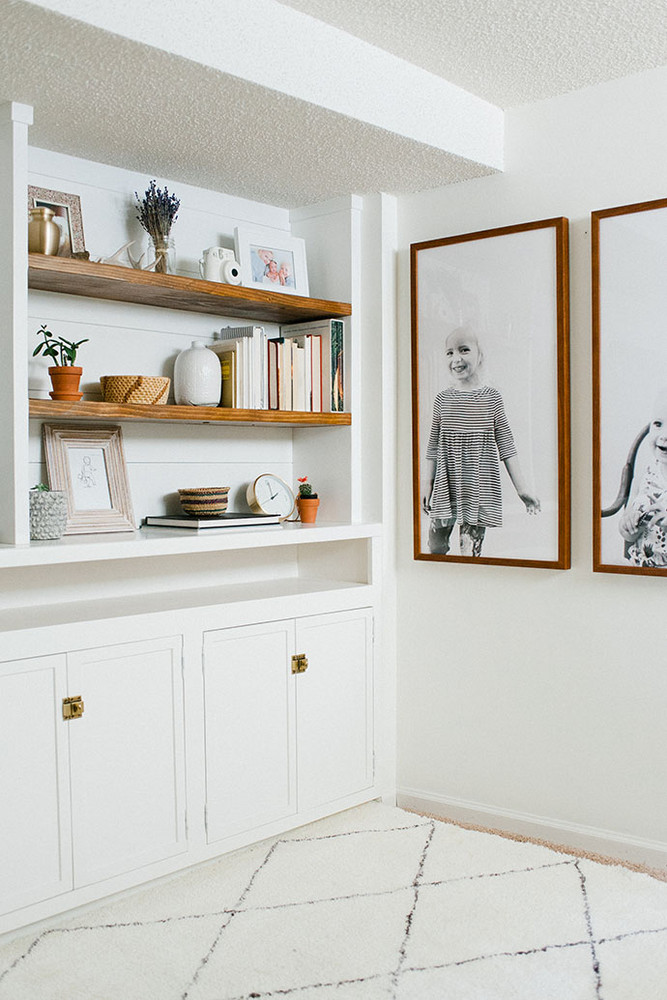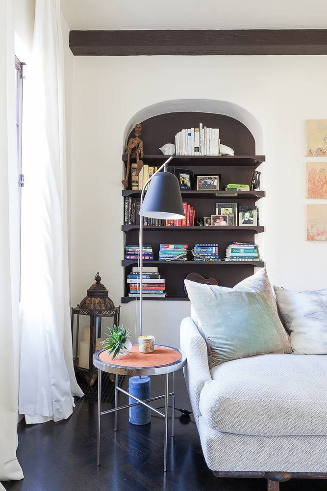Spotted in this quaint Brooklyn apartment via Homepolish’s Ariel Farmer, a pair of adjacent built-ins surround the window space, making ample use of the space beneath. As an added bonus, the floor-based shelf also doubles as a bench or spot to showcase decorative accents and more!