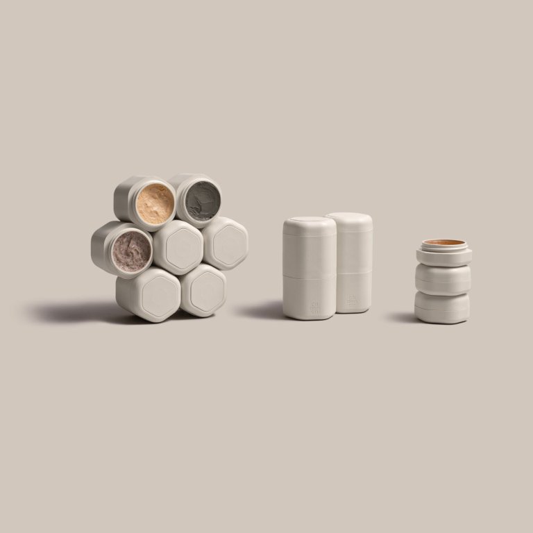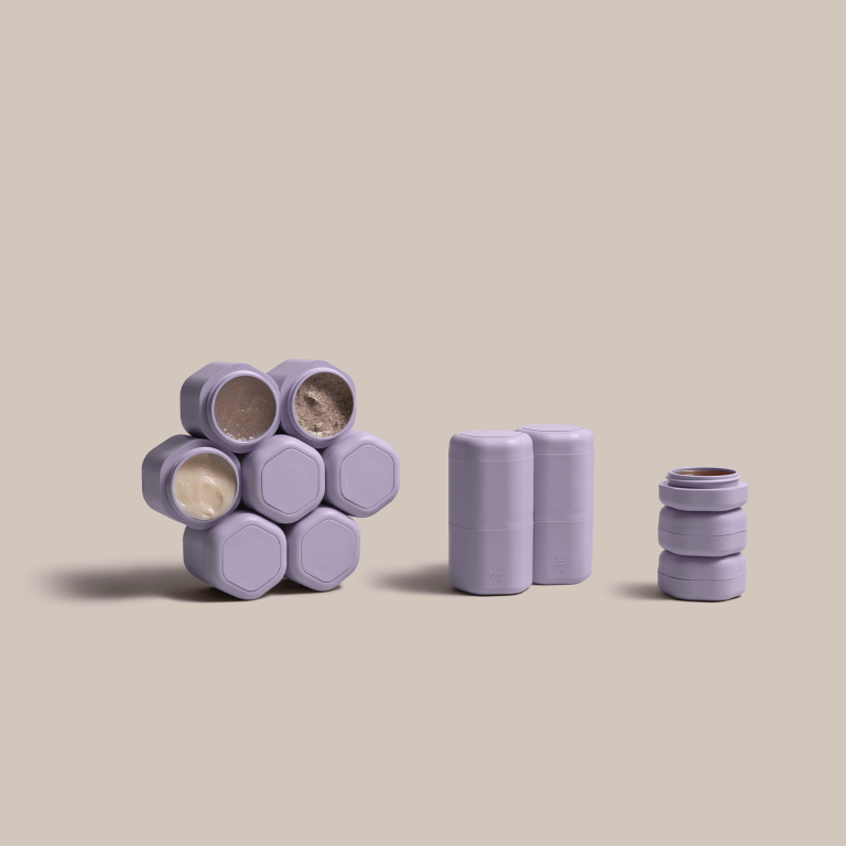 The new Capsule Flex System has a bigger circumference than the O.G. containers, and there are three different sizes: .56 ounces (same as the original capsules, but it’s wider and flatter); 1.32 ounces (for shampoo and supplements); and 2.75 ounces, which you make from combining a medium-size container with an extender that enlarges it.