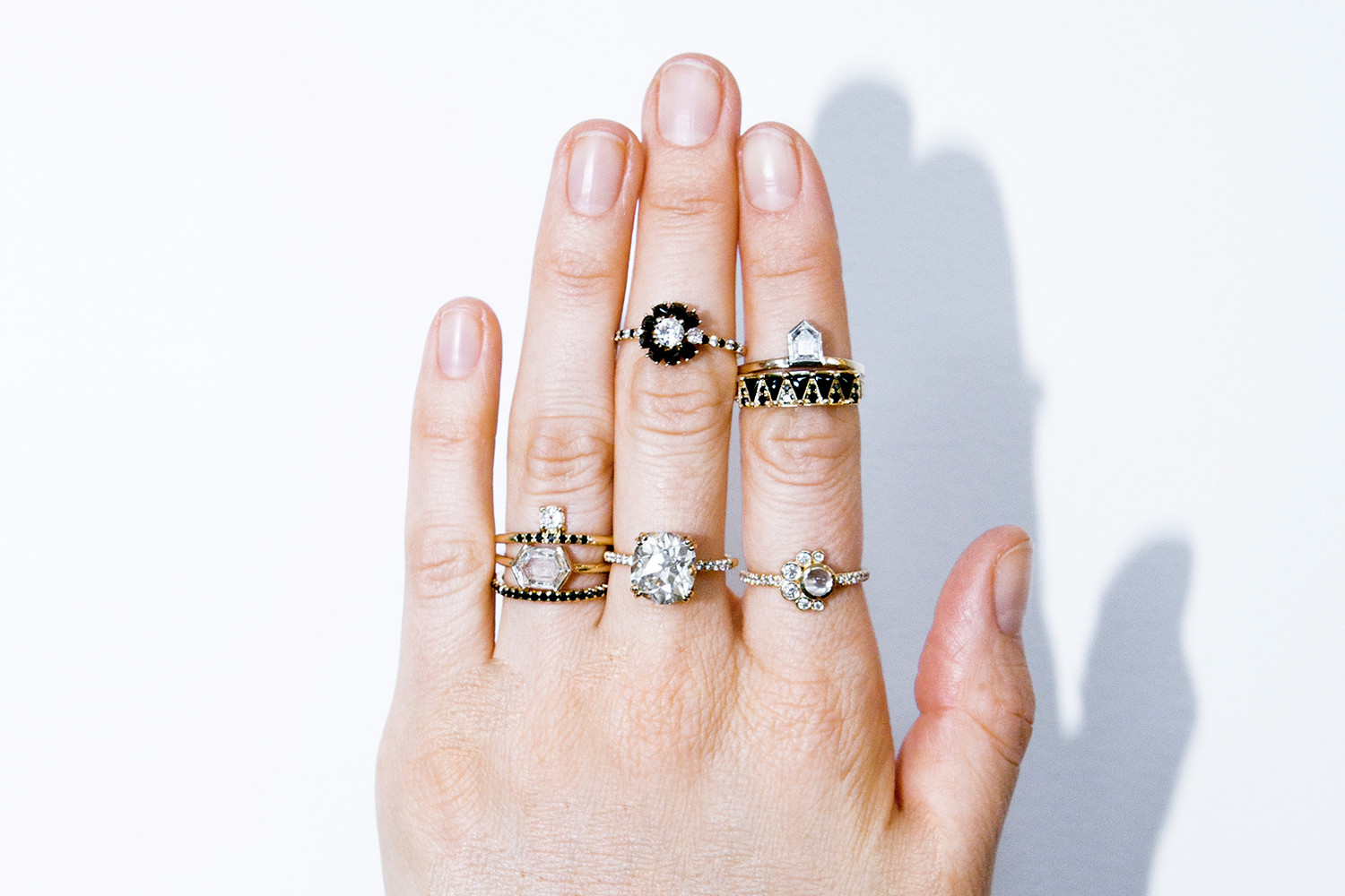 “Black diamonds are the way to go. People love them because they get to wear a diamond without buying into the whole traditional thing. I personally prefer to just use them as accent stones.”