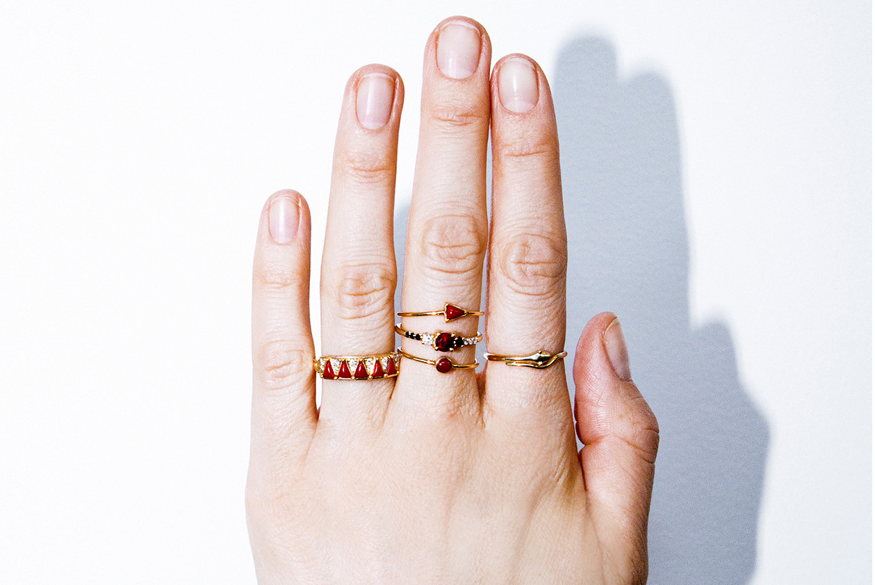 “Rubies! They have a presence. I actually don’t get asked to work with them a lot. People are intimidated by red. It’s loud and wild and gothic and reminds them of snakes and sex.”
