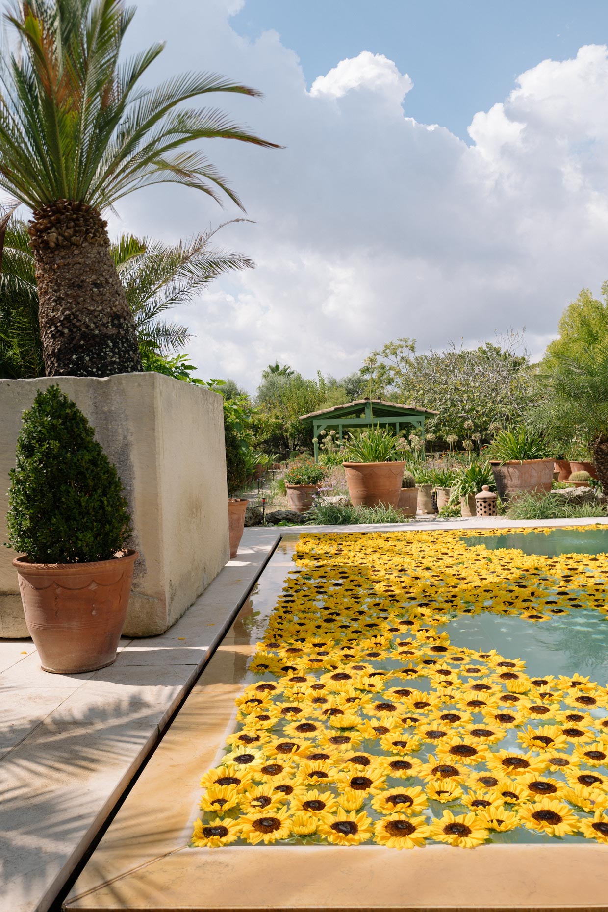Il Convento houses a diverse and colorful collection of art, objects, and textiles. Quirky figurines and bold ceramics set the stage for an equally vibrant wedding day. Other than a few added touches the hotel provided that day, like African fabric for the tables, garlands of Diwali marigold, and local sunflowers, the hotel and its surrounding gardens doubled as an idyllic backdrop on its own.