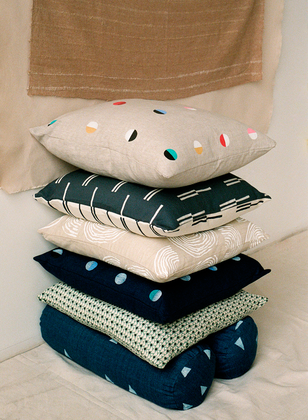“When things feel easy, it means you’re on the right track,” says Caroline Z. Hurley. The artist and textile designer founded her namesake home textile brand around 2010 and later opened a shop in Greenpoint, Brooklyn, offering pillows, blankets, and fabric by the yard in natural materials and minimalist geometric prints. “At the time, I was making block-printed linen pieces to use in my paintings,” she explains. “I didn’t know I was starting a business.” One thing led to another, though, and a big-enough-to-change-everything order came in, switching her focus to launching the company. “I believe in hard work, but I’ve also learned to ride the wave knowing something great is on the way,” she notes.