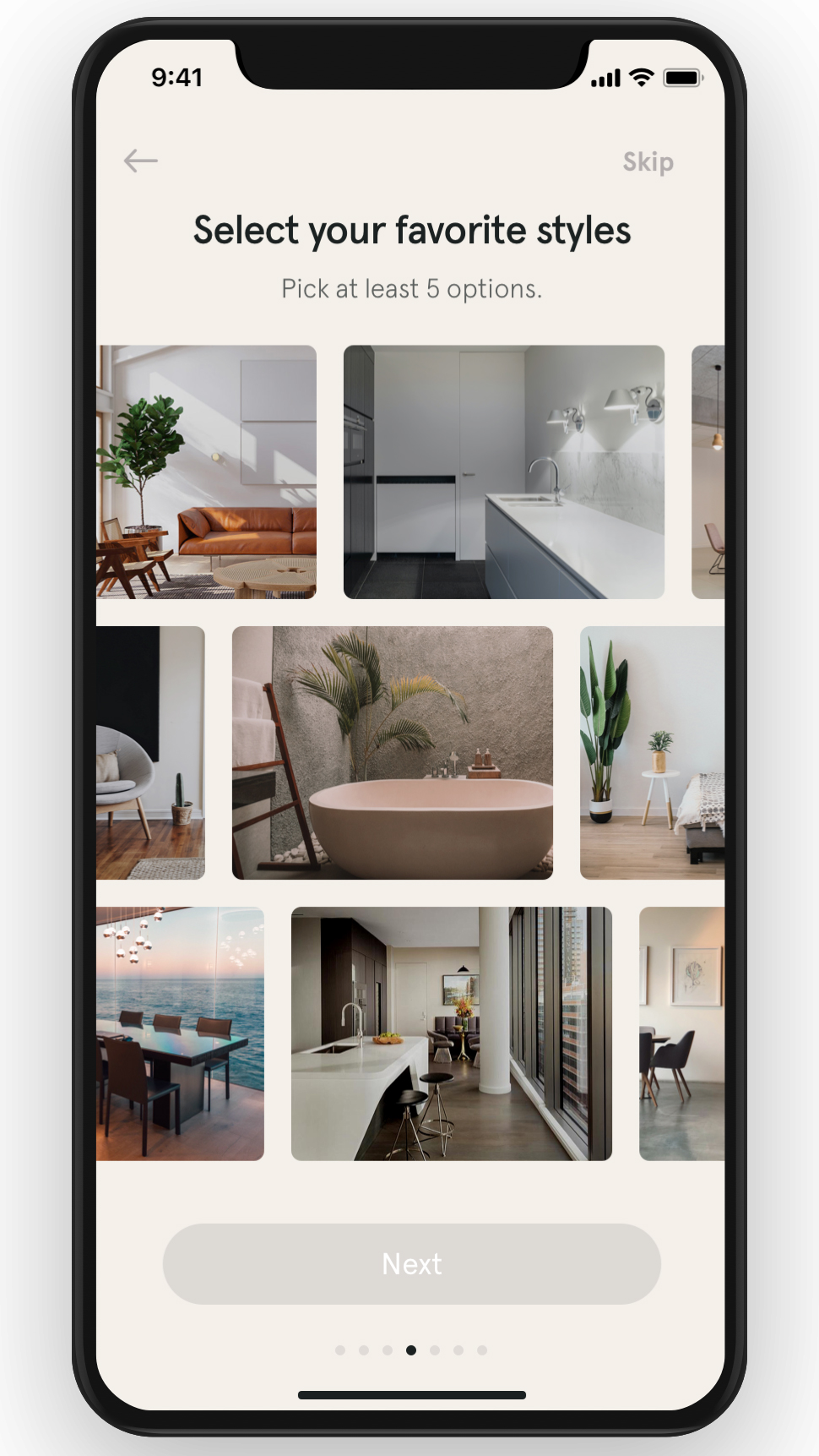 When you set up your account, you’ll be prompted to answer a questionnaire about your budget, location, housing type, and amenities preferences. Then you’ll see a series of photos of spaces. You check off the ones that speak to you, telling the app if you’re attracted to prewar details, prefer a renovated space, or are looking for, say, a loft with large windows. This process helps curate and filter your feed.