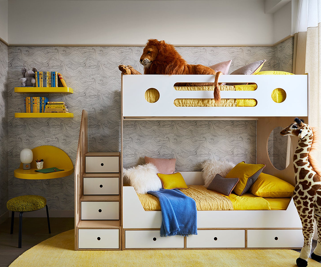 Another client request–turned–best-selling product: the loft-and-crib combo. “For some New York City parents, it’s a major space saver,” says Gil. Older siblings can graduate to the top bunk at 6 years old, and the younger ones can grow into a big kid bed below (which, from there, can be swapped out for a dresser, desk, or day bed in the teenage years).