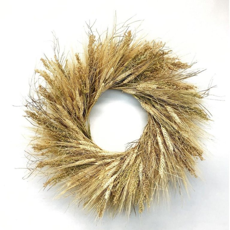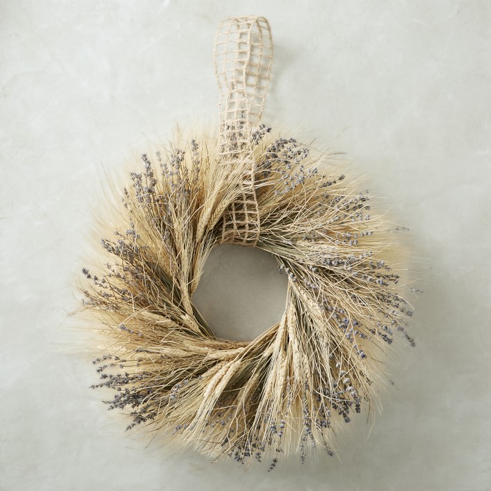 CB2’s pick is just the beginning; we gathered other dried options to pepper into your space. If you’re pro pampas but are hoping for something a bit more budget-friendly, Etsy offers door decor for nearly half the price, and if you want something sparser, go for a half-hoop with notes of wheat and bunny tails. Alternatively, choose a more textural proso millet and wheat wreath from Home Depot or West Elm’s tumbleweed, wheat, and lavender design for a hit of color beyond red and green.