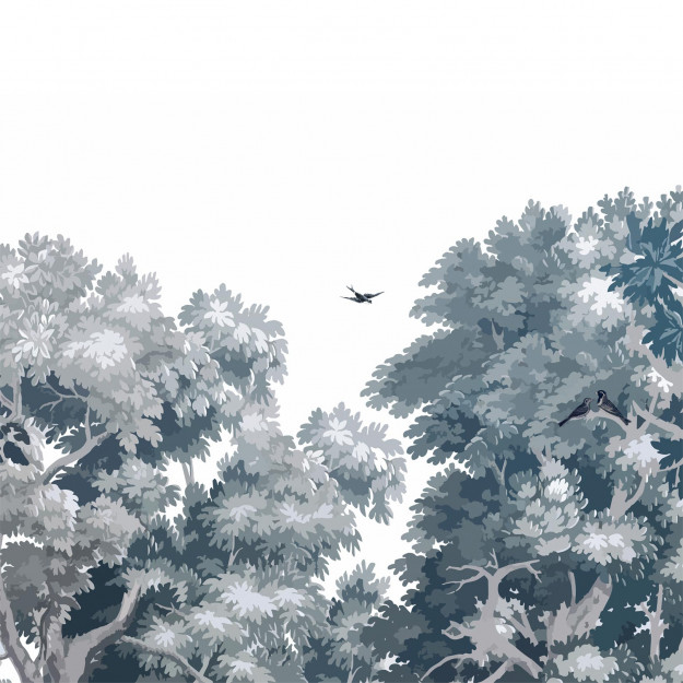 Yves Klein Blue takes on many forms in the home, from the living room and headboard alcove wallpaper (a nod to Paris’s vegetal decks and avenues) to the primary bathroom’s herringbone-patterned shower tiles. “It is the couple’s color crush, as it reminds them of their favorite holiday destination: Greece,” notes Fequet.