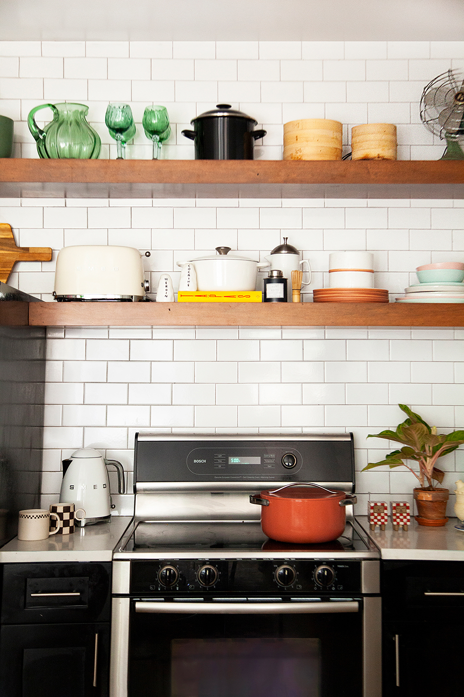 Don’t lie—we know you’ve been liking photos of open shelving on Instagram. If you can stay organized (and hide your not-so-pretty dishes elsewhere), ledges look great and require a fraction of the materials that traditional cabinets need.