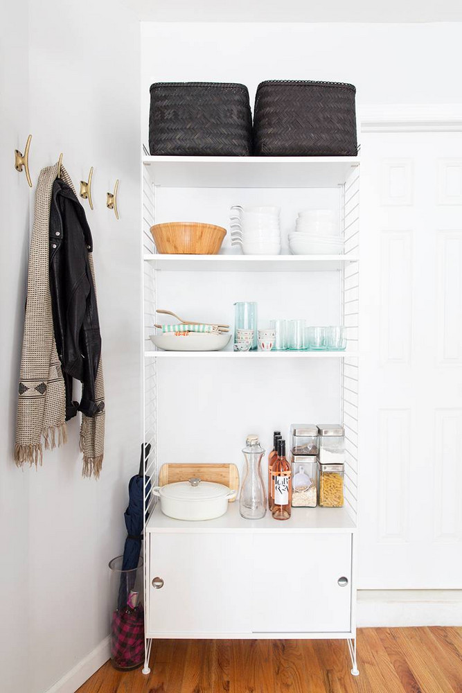The room was the larger of the two and had the best light in the apartment, and I started to get really frustrated with it being a storage closet and not a creative, pleasant space to be in. That’s when I decided to redo the room into a tiny studio/showroom, giving the collection a much better platform, and myself a creative place to work. Also, go vertical with shelving and storage solutions!