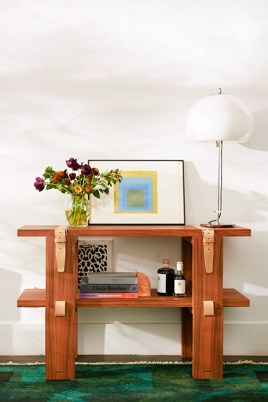 Hill has always known exactly what she wanted. She founded Tortuga in 2018 specifically because she couldn’t find the affordable, original decor she was looking for. “At the time, I didn’t own a single piece of furniture I valued enough to move with,” she explains. Since then she’s slowly acquired pieces she is sure to keep for the long haul. Some are from her own collection: The dining bench, for instance, stacks to form a console (she has a few in the house, including in the main bedroom, where it’s upholstered in a Viso Project jacquard fabric).