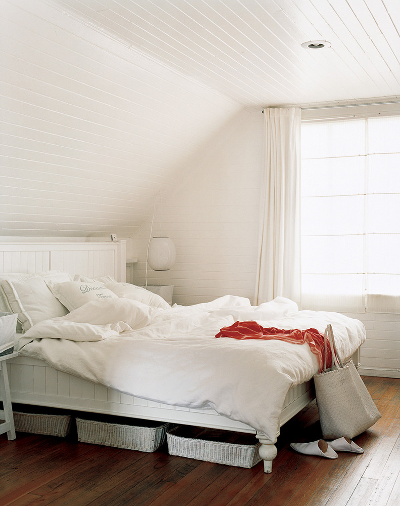 When short on floor space, you take to the walls. Bring in floating shelves to create your very own storage zone, not necessarily confined to the bedroom. Line the shelves with baskets and bins, and utilize them to store your lesser-worn items or extra bedding.
