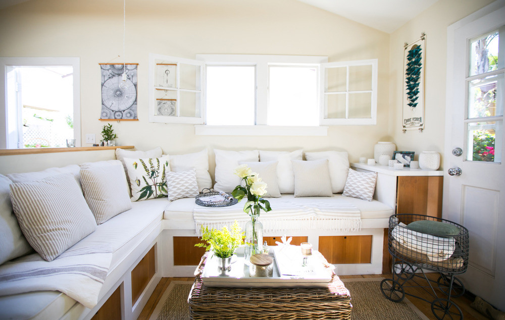 Take note from small-space living guru Whitney Leigh Morris, who knows just exactly how to make the most of tight quarters. Case in point? The built-in unit that sits as the foundation of the living room sofa, all the while doubling as a clever source of storage.