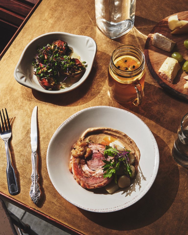 slow-roasted beer and black pepper beef with root veg and pan gravy