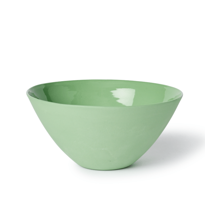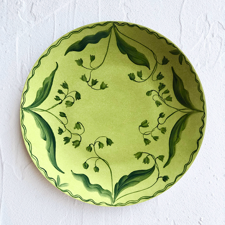 But the one that’s catching our eye the most this season we’re calling dusty clover. It’s not quite sage and less vibrant than newly cut grass—just like spring, it’s fresh but still a little muddy. Optimistic but still humble. More than anything, it’s a serene, nature-inspired pick that we recently spotted on the runway at Dries Van Noten, in produce-inspired vases, and in sunny scalloped planters. It’s even in the food at the farmers’ market right now: artichokes, spring peas, and asparagus.