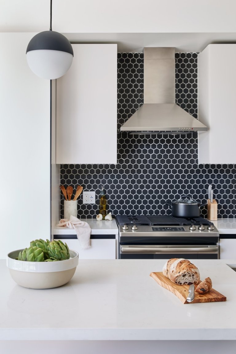 “Layering in minimal abstract art, California landscapes, and real plants creates a home that makes you want to kick off your shoes and let out a deep exhale,” adds Gury.