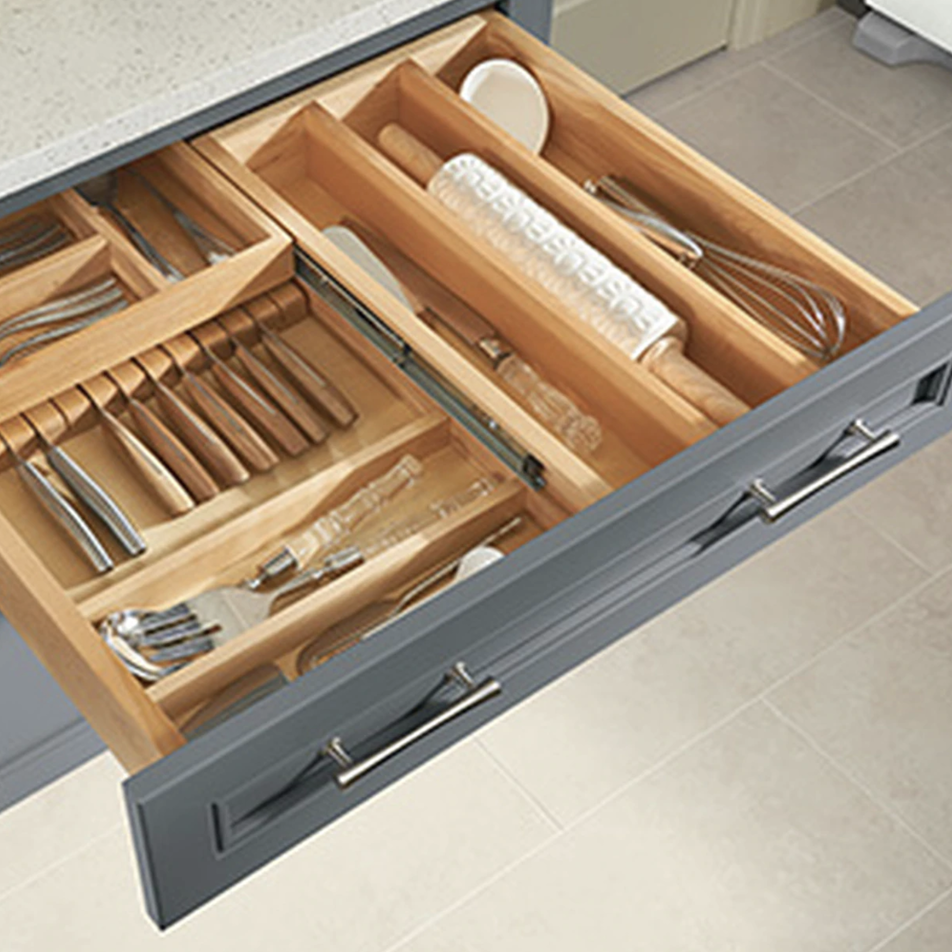 First up, Cox revealed her epic utensil drawer. While bamboo dividers and plastic compartments suffice for most of us, her bespoke version has a niche for every single tool, down to her cheese grater and bottle opener. (Psst: Hafele makes custom ones like Cox’s per request.) Then she moved on to her spices, which live in uniform bottles and are displayed cap-side up in a drawer so she can quickly decipher her basil from her coriander.