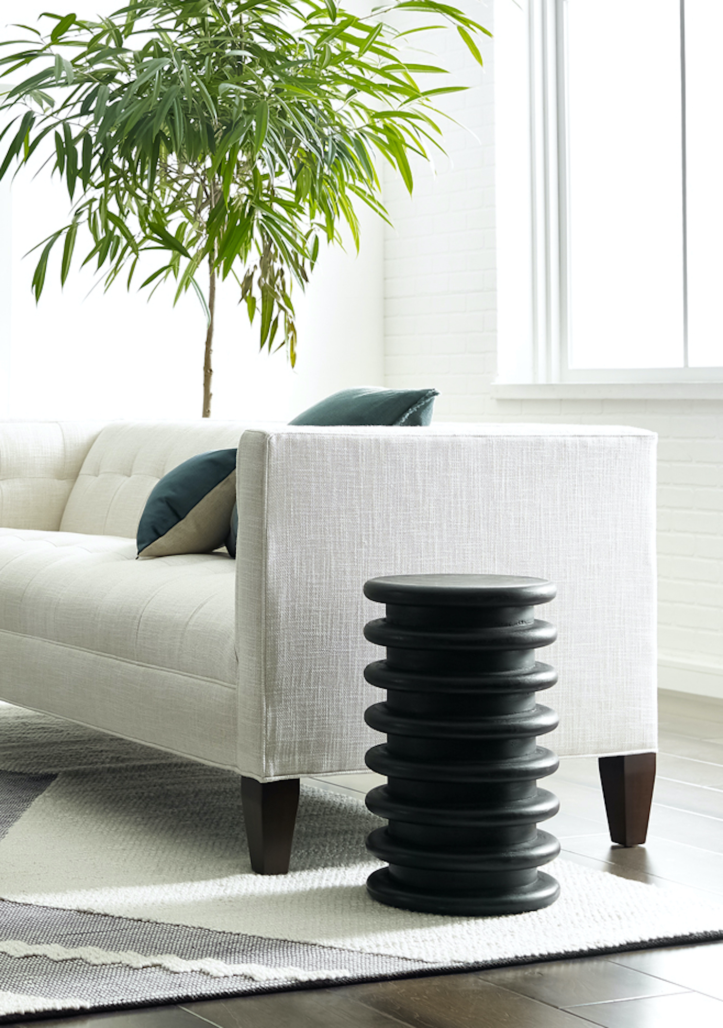 Side tables need not be leggy. At just under 2 feet high, this option is there when you need it and keeps a low profile when you don’t. Let its carved mango-wood shape add visual interest to a space that could use something solid.