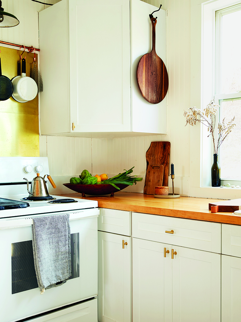 This above-the-range placement prioritizes your most trusty cutting board and allows you to grab it in the heat of the moment. Just prop it up against the backsplash.