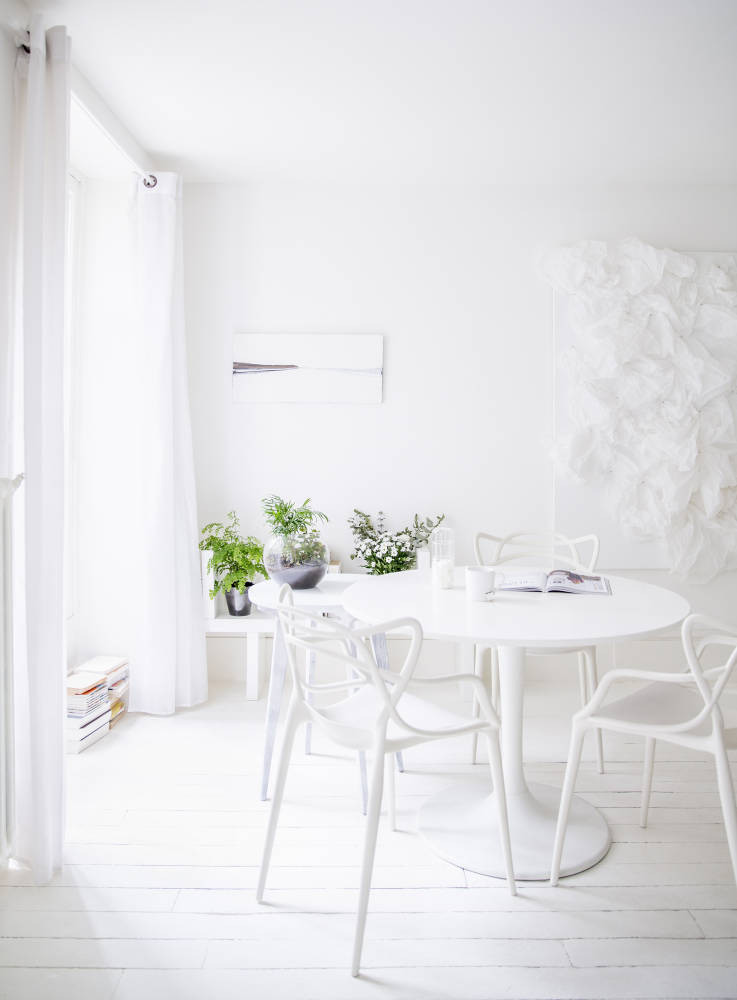 Too much white feels too bare for your taste? Work in some wood: These dip-dyed stools are the perfect way to incorporporate just a touch.