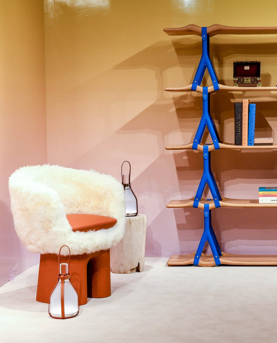 We loved these chairs by Raw Edges when we first saw them at Salone in March, and they proved the perfect complement to Andrew Kudless‘s new cobalt blue–accented shelving unit, Swell Wave, in Louis Vuitton’s Objets Nomades collection.