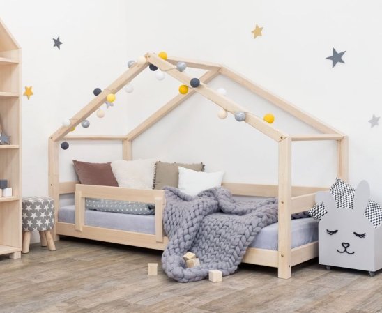 The Benlemi House bed—which was painted to tie in with the scheme—added a whimsical element of fun and acts as a daybed when Sofia has friends over; as she gets older, Lisa can swap it out for a more grown-up style. A large rug from La Redoute lends texture and soundproofing to the wood chevron flooring, and a mini table and chairs let Sofia sit and draw, with natural light coming in from the window.