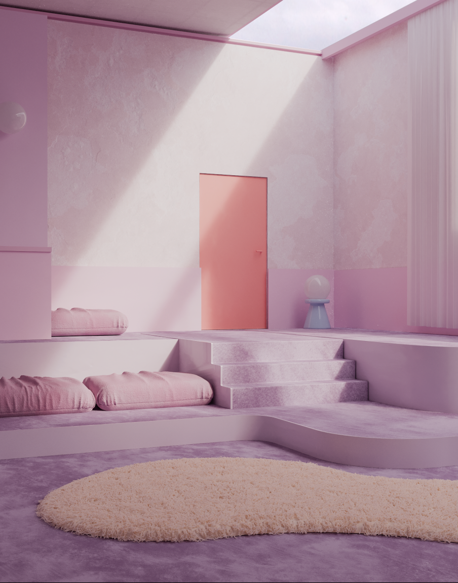 Pink-washed bedrooms accented by gauzy lavender curtains. Rosy armchairs that look like they were concocted out of bunched-up flowers, situated in the middle of a cave. Living rooms filled with Faye Toogood goodies. In real life, creating any one of these places would cost thousands. But in the digital world, there is no budget; designers can let their imaginations run wild.