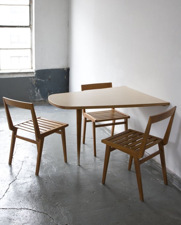 For those that want to really commit to this look, opt for a wall-mounted piece that, by design, is only supposed to have three functioning sides—like this sleek version with a stand alone leg. Once dressed up with your go-to tableware or an unexpected floral arrangement, this utilitarian approach will feel both chic and instinctive.
