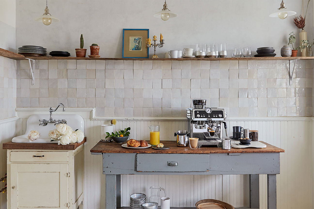Uniformity is overrated. Anthony D’Argenzio proves the merit of mismatched furniture in his upstate New York home, where weathered antiques take over his kitchen in the most stylish way: The sink and prep station are separate, stand-alone pieces. Scour your local vintage shops for a collection of aged items to create your own perfect mix.