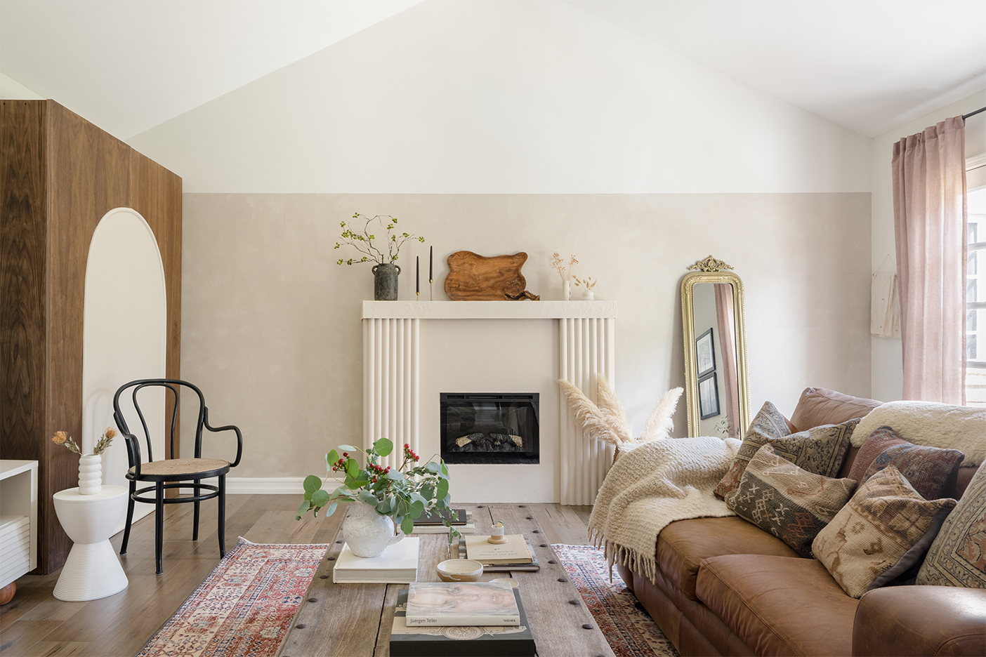 Fixing the slightly crooked baseboards was a non-priority for Brownell (it’s a garage at its core, after all), but she did spruce up the white walls with Portola Paint’s Roman Clay treatment, an eco-friendly plaster finish. She only covered half of each surface, mainly because the process is time-consuming (it required two coats), although the design ended up adding some visual interest to the airy space. Her only regret is not using a plastic putty knife to apply the stucco-like material from the get-go. “When a metal tool touches the light-colored paint, you start to see gray streaks when you smooth it out,” she recalls.