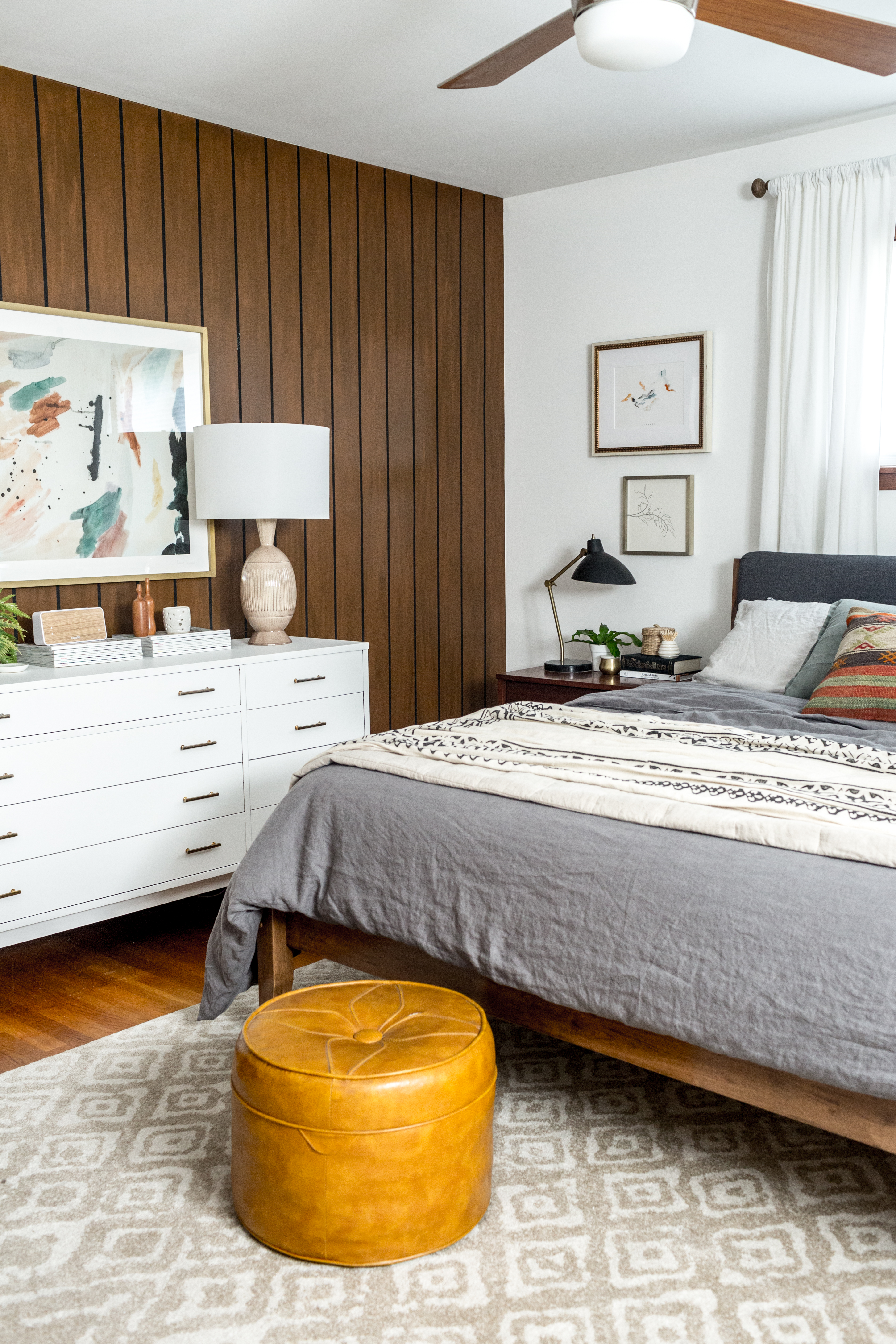 Another fresh way to fake shiplap is to paint it! Yes, really. Just take it from Carrie Waller—blogger behind Dream Green DIY and owner of this magical 1960s inspired Virginia home. In lieu of installing real (or Stikwood) planks in the bedroom, with a little masking tape and a few coats of paint, Waller DIY’d her way to the perfect shiplap masterpiece. Like most of us, the idea of woodworking, taking precise measurements, and wrestling with power tools, wasn’t the most appealing idea.