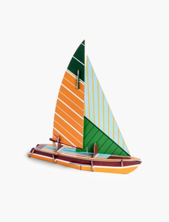 This boat arrives as 19 flat pieces of recycled cardboard, which little hands can help assemble to create a colorful, classic 3-D cutter—the building process is part of its appeal, though they’ll enjoy playing with the finished product, too.