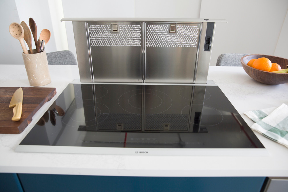 An additional element which we were particularly excited about was the hidden ventilation system. While most homes feature the classic hood above the stove, our industrial ceilings and need for a streamlined kitchen required a different approach. Enter the Bosch Downdraft, a vent that is embedded within the island and can rise up for cooktop ventilation! Our minimalist-loving hearts were met with great contentment.