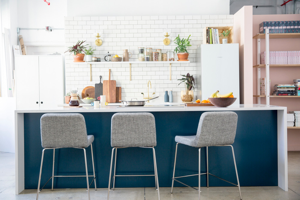 With a new office space comes ample opportunities for a refresh. Such was the case for team Domino, as we upgraded to bigger and better digs, right in the heart of Midtown Manhattan. Within our new, open-layout office, the primary goal was to forge a space for a growing team. A built-in kitchen that could double as a fully-functional studio was at the top of our wish list. Read on to get the ultimate scoop on the amazing transformation and see our full kitchen reveal!