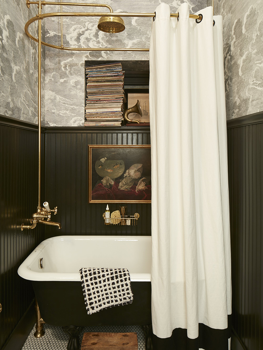 Cancers, odds are you’ve been called the grandma of your friend group once or twice, probably due to your penchant for family heirlooms, preference to cook dinner at home, and the occasional crabby attitude. Graham Kostic and Fran Taglia’s guest bathroom will let your inner old soul out with a two-tone claw-foot tub, dreamy Fornasetti wallpaper, and even a phonograph on display.