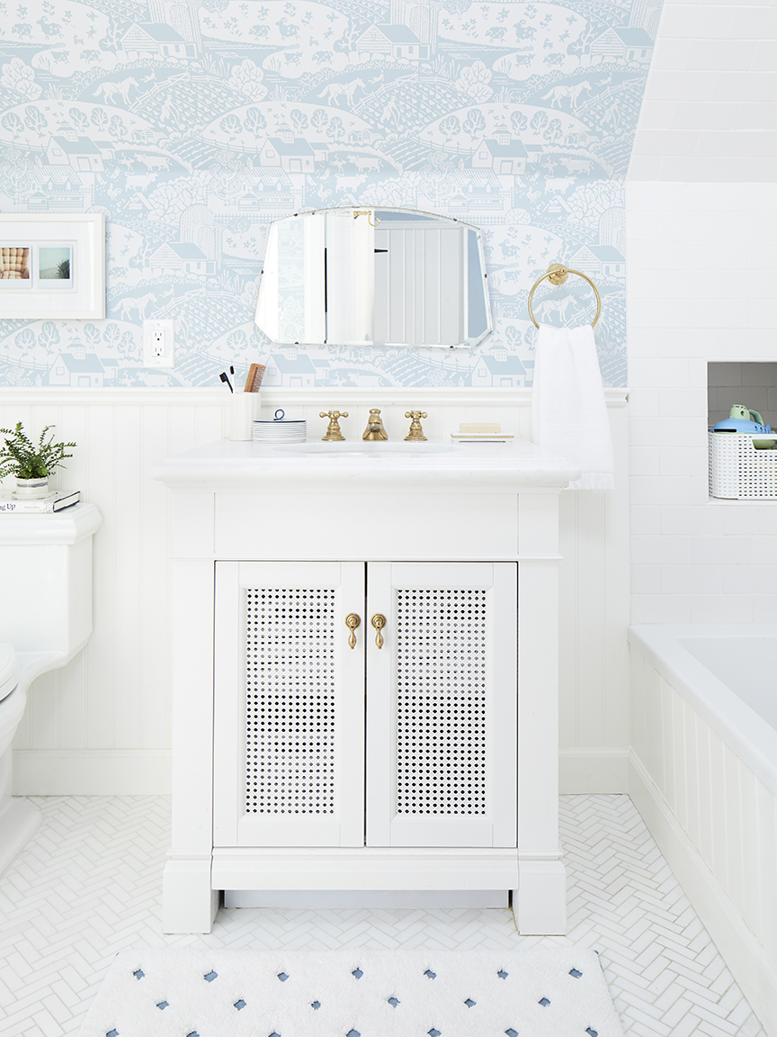 Pisces have a gentle, empathetic spirit that craves a respite while brushing their teeth. With its baby blue wallpaper and wood-paneled walls, this Emily Henderson–designed bathroom will take you seaside (you’re the sign of the fish, after all). Be careful or before long, you may just be setting up an art studio in there, too.
