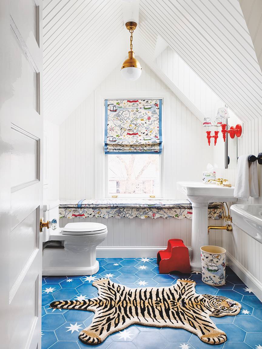 Eccentric Aquariuses need a bathroom that sparks creative ideas. This Washington, D.C., space, designed by Cameron Ruppert, has all the necessary quirks to get you thinking: fun, patterned floor tile; graphic fabric, and a tiger rug underfoot. The weirder, the better, right?