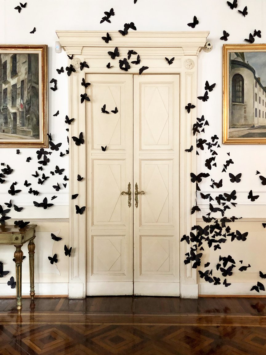 We wouldn’t usually classify butterflies as scary. But fill a home with 15,000 of them, all black, and you’re bound to be a little frightened. This we learned from artist Carlos Amorales, whose exhibition at Salone del Mobile Milano in 2019, dubbed “The Accursed Hour,” still has us spooked. He covered the walls of the grand Fondazione Adolfo Pini building with swarms of paper insects (staircase and ceiling included). Our first thought when we saw the showcase: We can’t wait to try this at Halloween.