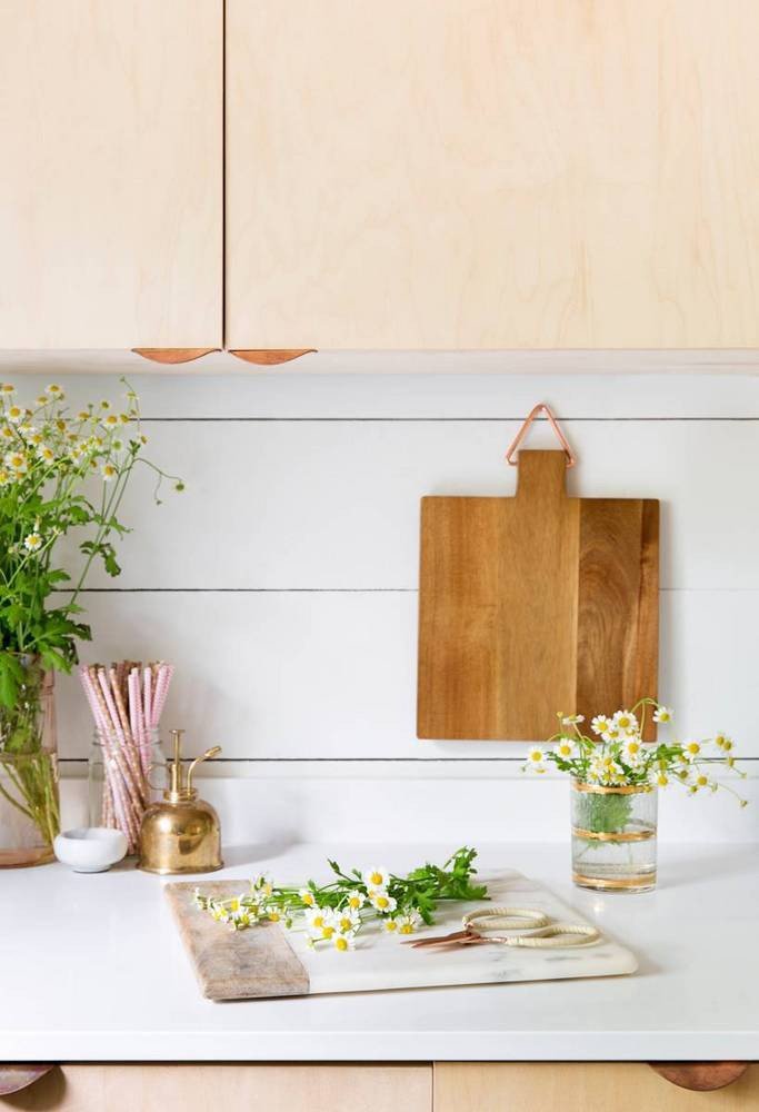 If your kitchen has an unsightly tile patterned backsplash, you can easily hang a cutting board to conceal it! Try removable plastic hooks so you won’t damage the tile.