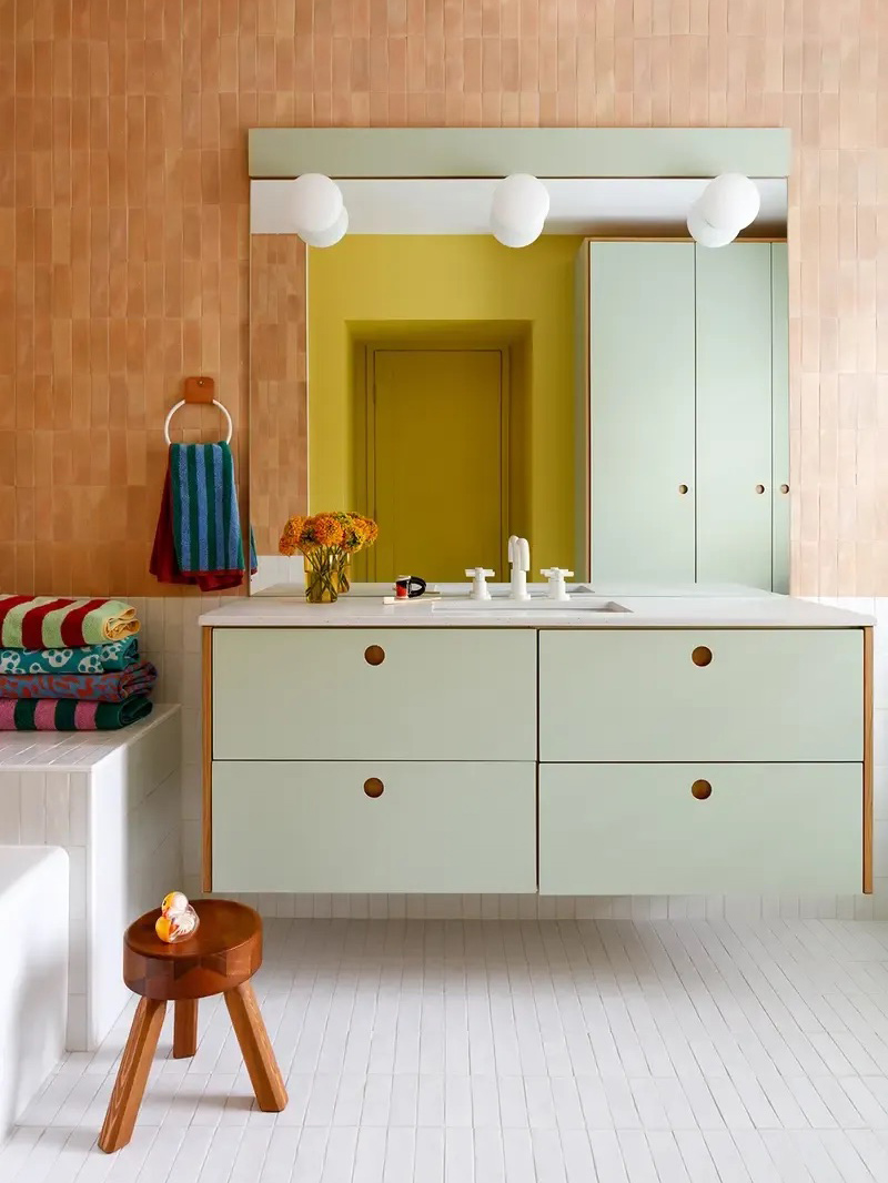 Get crafty with an eclectic assortment of tile, and don’t be afraid to filter in mixed materials. Case in point? This beautifully curated vignette from designer Jessica Hansen’s Portland, Oregon, home, filled with Popham tile.