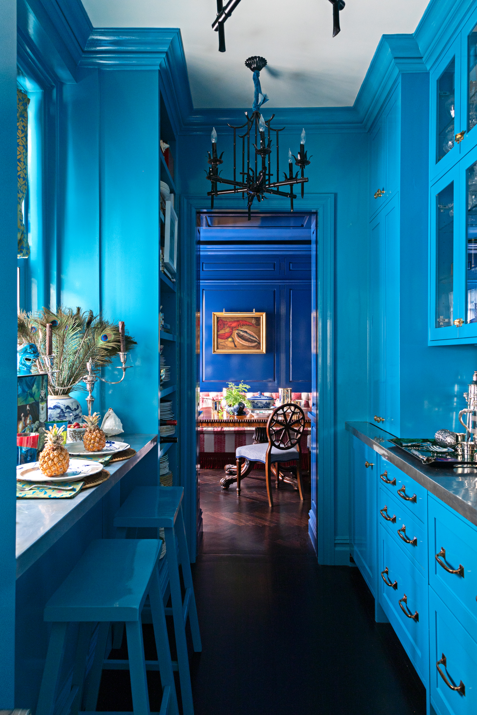 Other unexpected inspirations include a handful of peacock feathers that helped determine just the right pairing of blues in the dining room and bar area. “After testing dozens of paint samples, we had confirmation from nature that it wasn’t crazy to have them together,” quips Scheer Young.