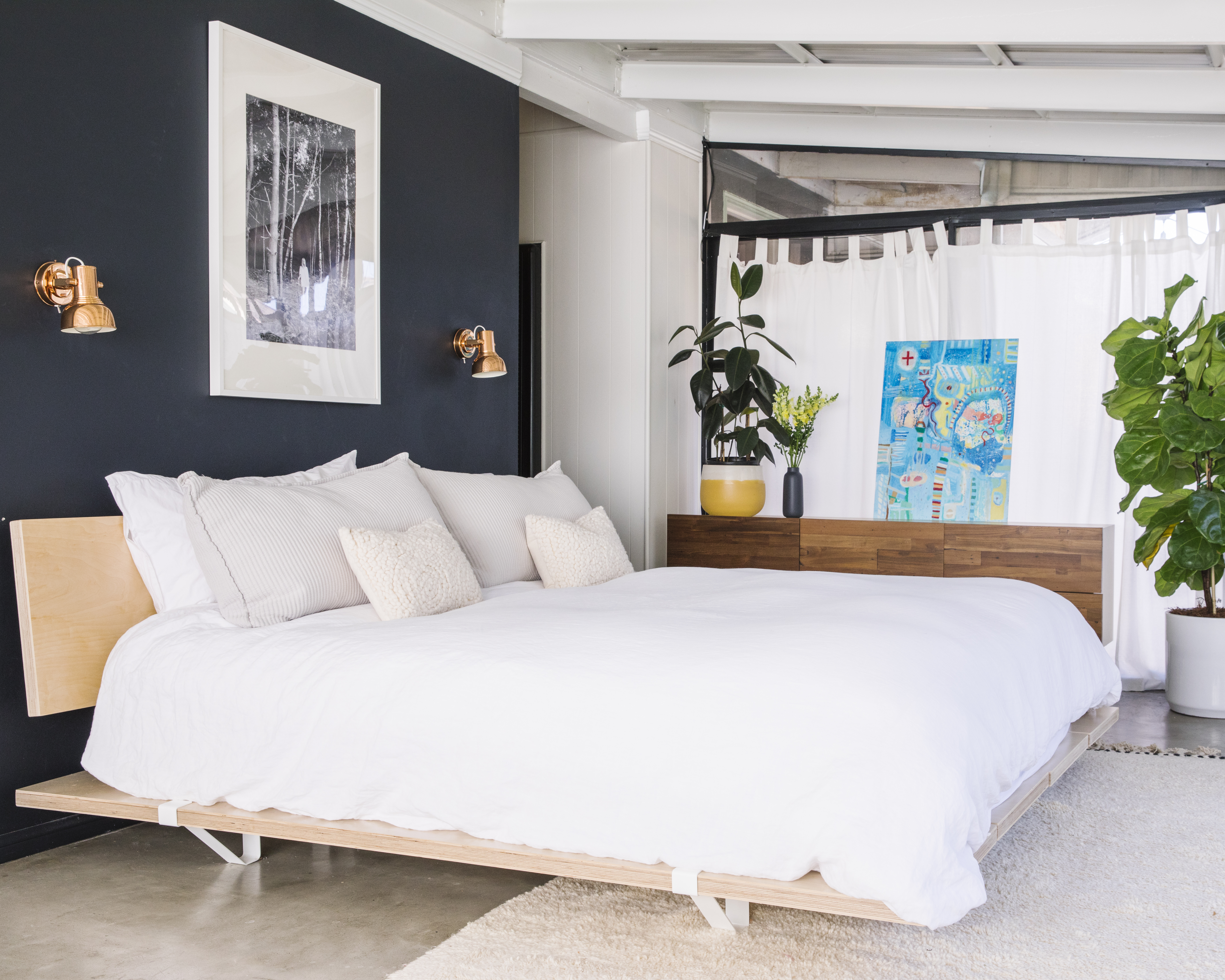 The home is a happy medium between the couple’s individual style identities—Bellis’s inclination toward the all-white contemporary and her husband’s affinity for vintage pieces and color. “My husband is into flea market finds. He’s more sentimental and loves to hang on to everything,” says Bellis, “whereas I like to toss things out.”