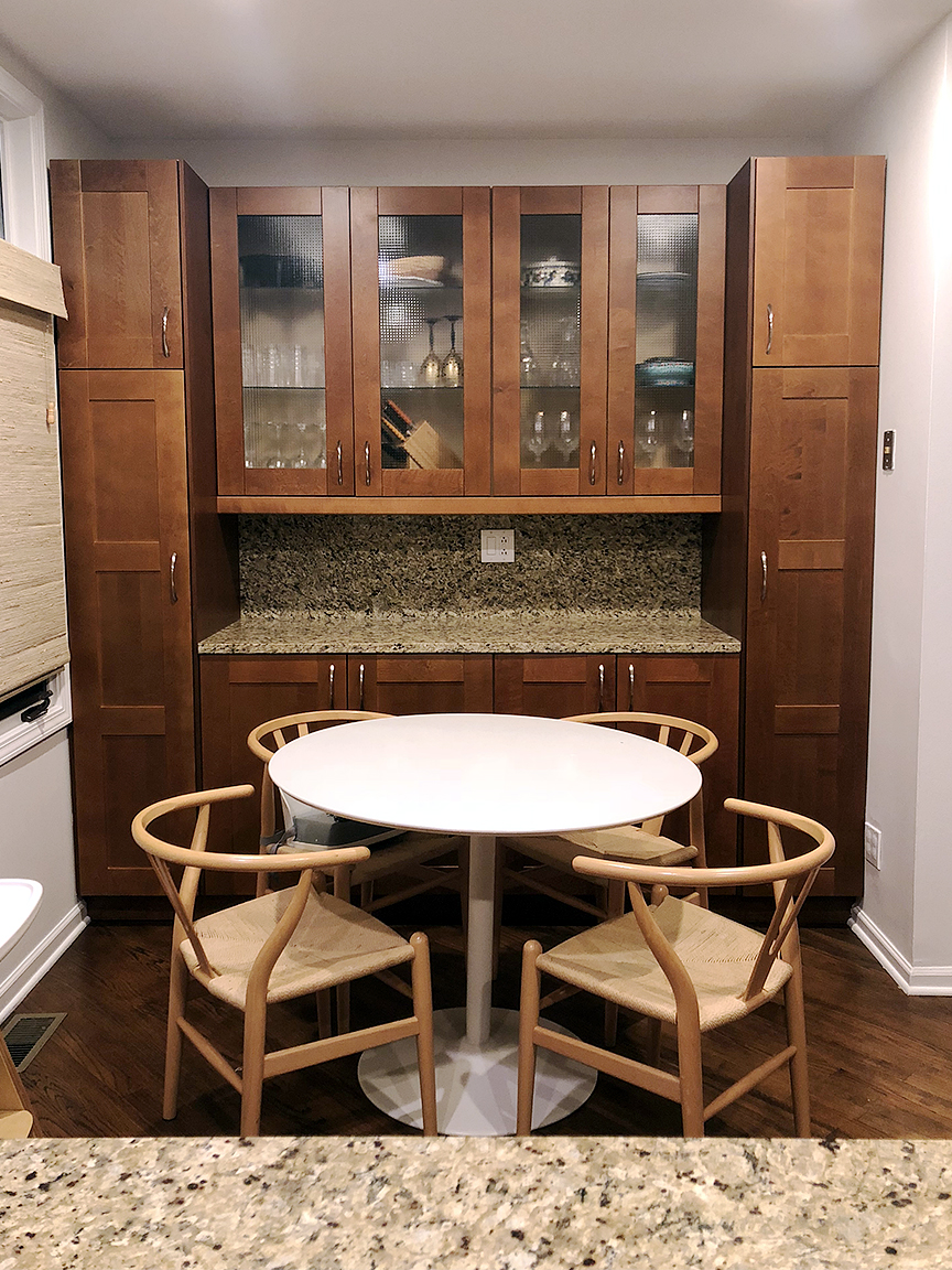 Fast-forward to 2019, and Stamos found herself faced with a different challenge: She was having a hard time narrowing down the endless possibilities before her. “I was my own worst client,” she says of the kitchen overhaul they’d finally decided to embark on. The designer envisioned custom cupboards, a new pantry, a built-in banquette, and a statement range hood. But when the couple saw the bottom line, they nixed the idea of a gut remodel in favor of a budget-friendly spruce-up. “The cupboards were Shaker-style and in great shape,” Stamos explains, “so I knew I could get the look I wished for with some paint and a few key updates.”