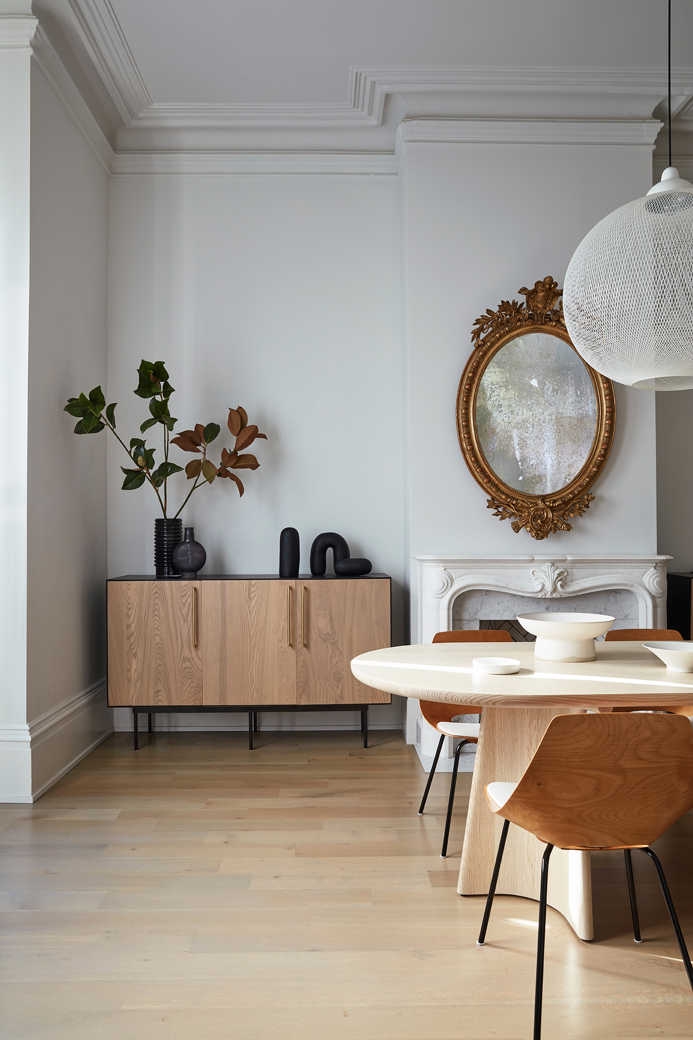 First came the loving yet painstaking process of maintaining the important original features: rebuilding ceiling medallions, preserving moldings, ensuring the functionality of pocket doors (down to the hardware), and restoring fireplaces in a Victorian-era style. Without a general contractor, Hiemstra relied on Google, Instagram, local Bayview shops, and her DIY-savvy husband to help source the right builders and materials. She also read up on electrical plans, teaching herself about wallboards and insulation, figuring out permits, and getting a grasp on stone sizes.