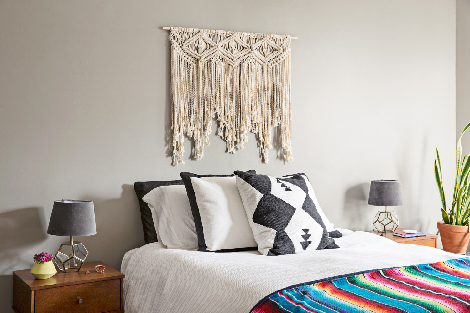 Easy care plants like African ZZ and spiky aloe bask in the sunlight streaming through the living room’s bay window. Air plants in wall-mounted ceramic vases form a grid of green in the hallway. Isom Johnson appreciates the pops of color, and she says indoor gardening is a kind of therapy. “After a long day at work, plants absolutely help to melt my stress away, keep me connected to nature, and put a smile on my face.”