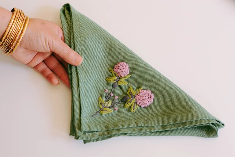 It’s impossible to choose a favorite among the intricately beautiful pieces, but right now we’re eyeing all of the tabletop accessories. Sosan Designs sells napkins with stunning yet subtle crocheting around the borders, while Asila Design is creating placemats with floral motifs worthy of any summer soiree. Whether you choose linens with delicately embroidered edging or a forest green hand-fringed table runner, your guests are sure to talk about more than just their upcoming weekend plans.