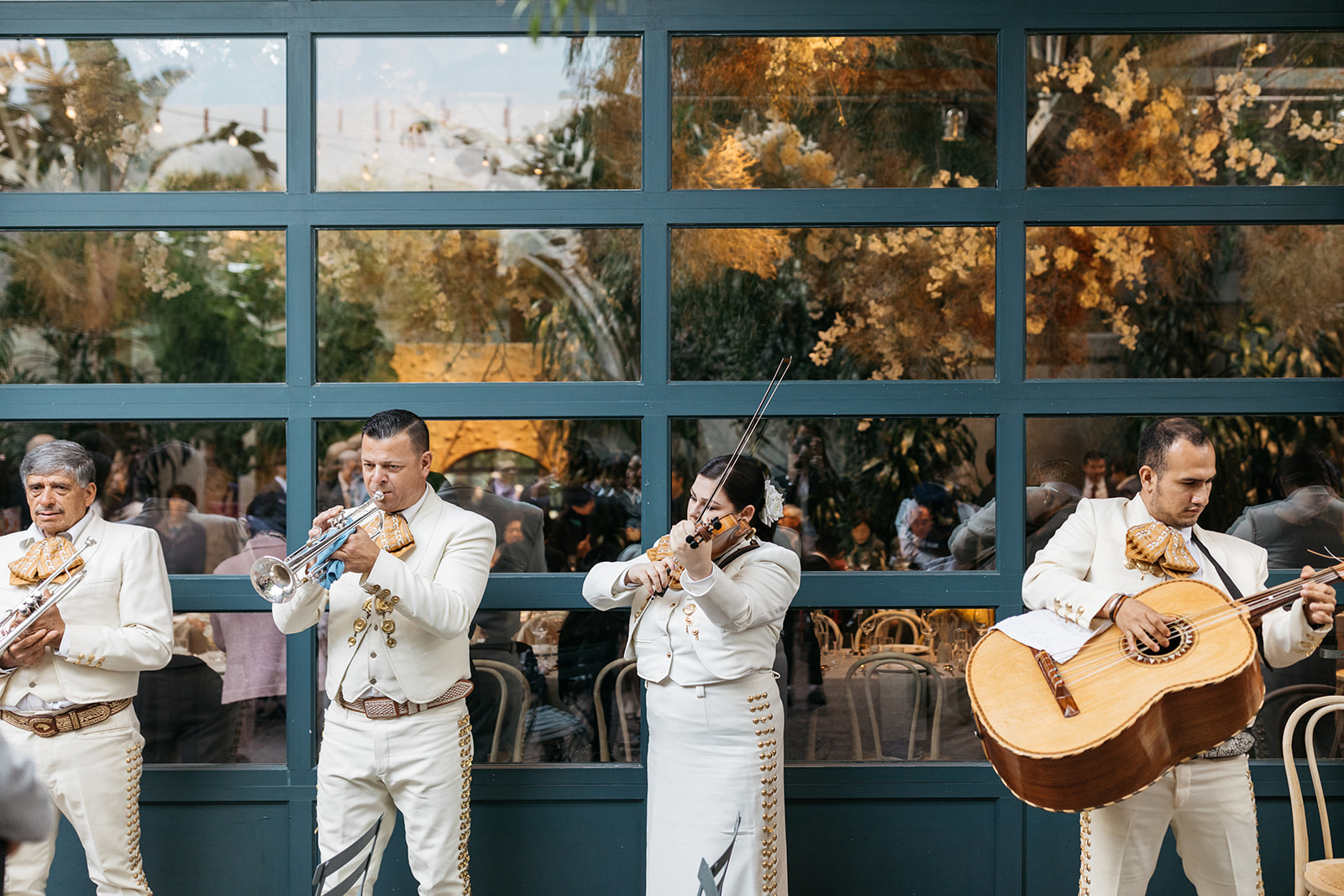 Since they listen to mariachi music when they do taco night at home, Sae planned an unexpected mariachi moment for the cocktail hour. During dinner, the soundtrack turned Brazilian thanks to a bossa nova trio, whose guitarist played a traditional Korean song for the ceremony processional hours earlier (and “Moon River” for the bride’s entrance).