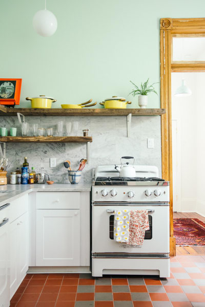 Now, the style feels fresh. Try open shelving instead of closed cabinetry; Bertazzoni says this balances out the darker tone and makes the kitchen feel larger. Or incorporate the antique style in a contemporary manner. Sleek cabinets and minimalist silhouettes contrast the heavier shade.