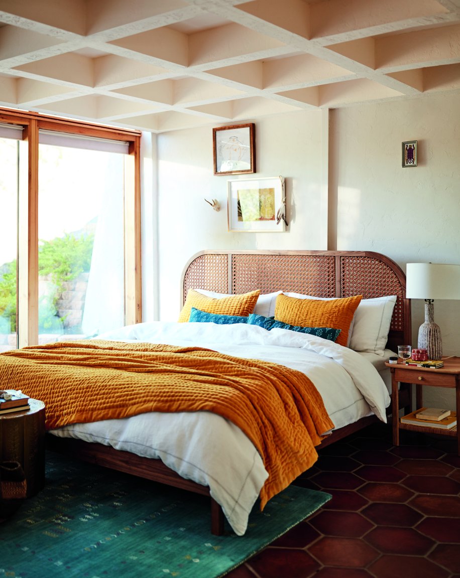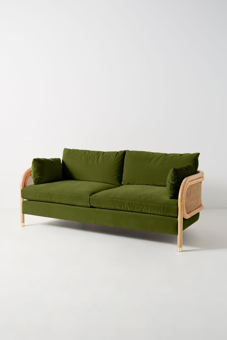 Introducing the cold-weather alternative to summer’s rattan peacock chairs. From bentwood furniture frames to woven leather that perfectly mimics cane’s texture, we’re seeing the next generation of the material come to life. The backing on this green sofa is reason alone to consider a new couch.