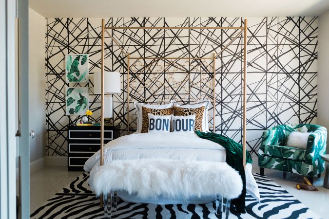 We are loving wallpaper on the ceiling right now! In the girl’s room it is a whimsical way to mix up a favorite design trend. We felt it particularly appropriate with the playful Hygee and West bird pattern.