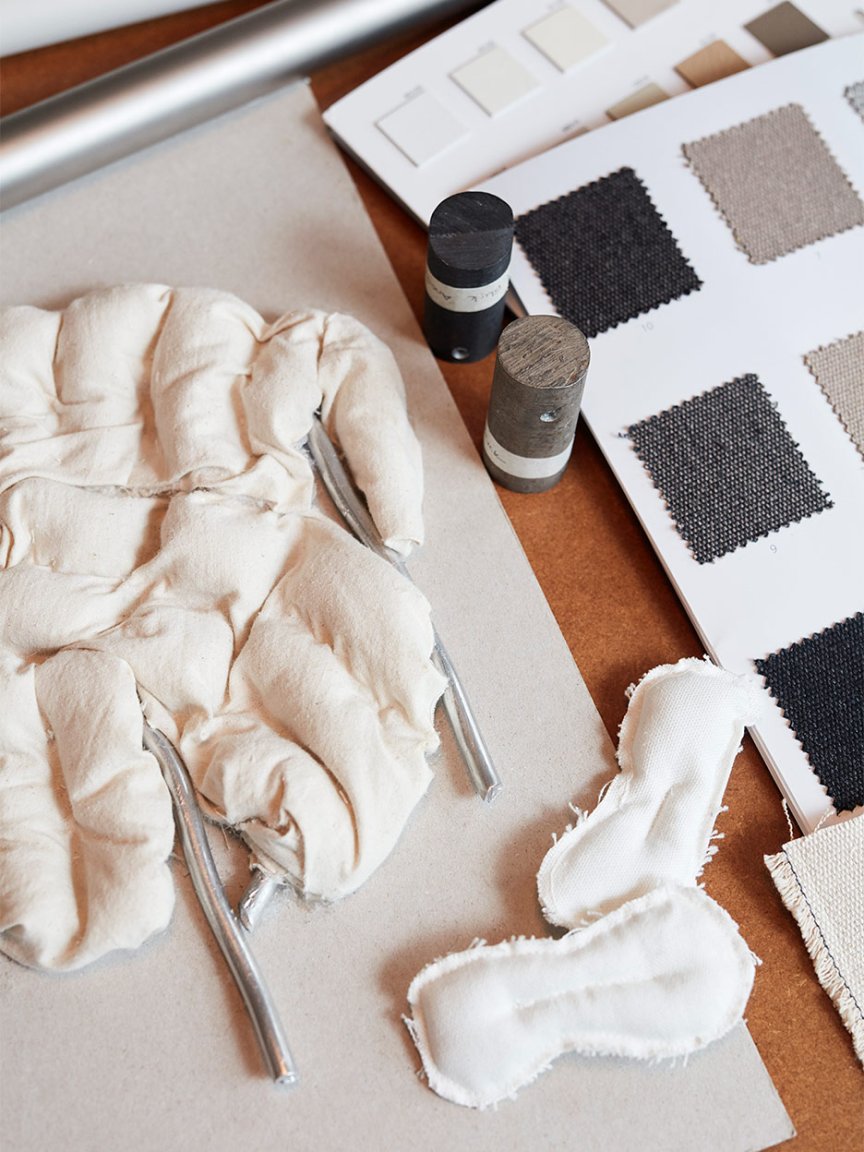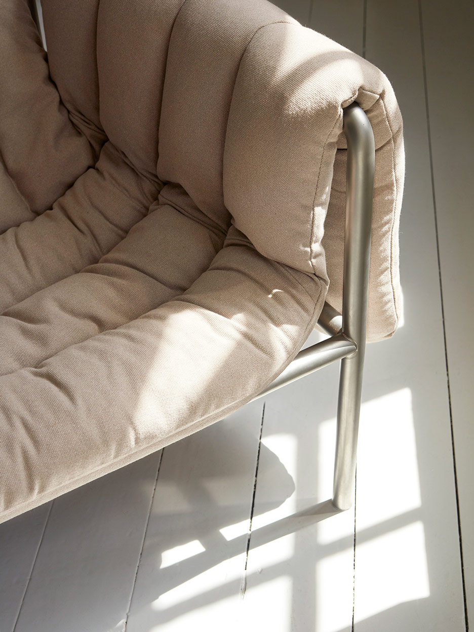 “The idea behind the Puffy collection is to emphasize the two almost contradictory ideas at play in the furniture,” says Toogood of her tactile new take on seating design. “First, stability and strength, highlighted by leaving the stainless steel framework on display, and second, comfort and reassurance, in the form of the puffy upholstery.” Described as a “labor of love” by Hem founder and CEO Petrus Palmer, the collection is the result of years of research and design development between the two teams.